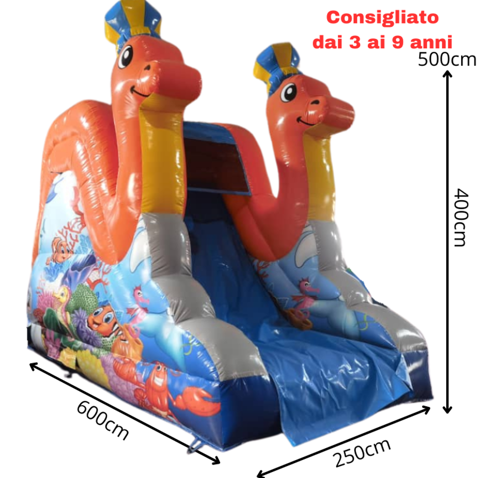 Descrizione: Divertentissimo scivolo con 2 serpentoni, palme e colori.