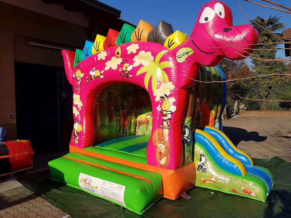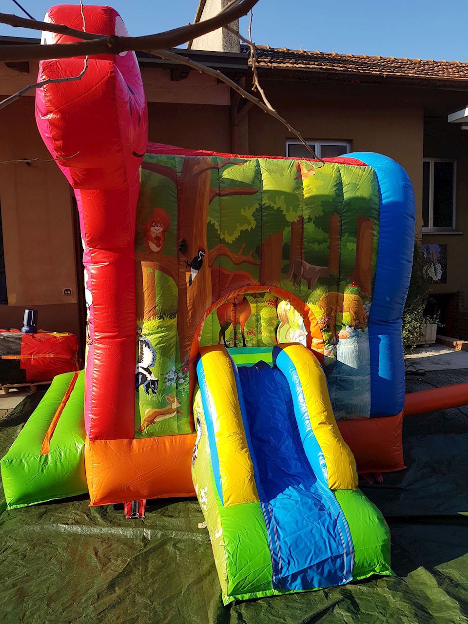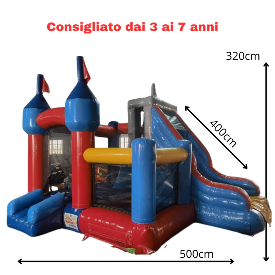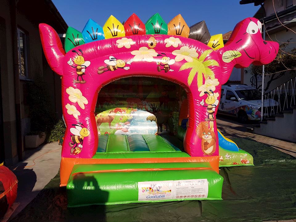 Descrizione: Gonfiabile combinato con zona salto, ostacoli e scivolo finale. Grafica accattivante e amato dalle bambine.