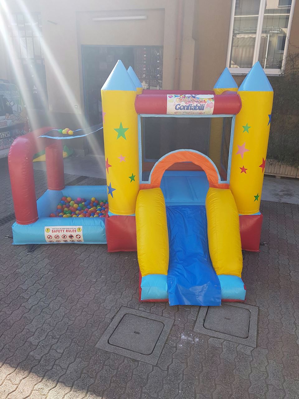 Descrizione: Per i più piccoli, il miglior gonfiabile! Consigliato per bambini anche piccolissimi fino ai 4 anni, salterello e piccolo scivolo affiancati da una bellissima piscina con le palline.